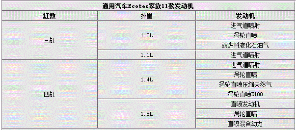 根据通用汽车发布的信息,全新一代Ecotec发动机家族共拥有11款发动机,主要在1.0L、1.4L与1.5L三种排量发动机基础上拓展,推出增压、非增压以及新能源等不同类型发动机,这些发动机的最大功率从56千瓦直到123千瓦,峰值扭矩从95牛米到250牛米。