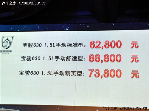 2011年8月9日,上海通用五菱宝骏宣布宝骏630正式在国内上市,此次上市一共有3款车型,售价区间为6.28-7.38万元,详细车型售价请见下表: