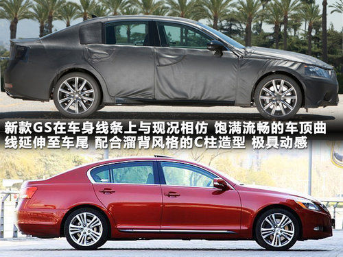 车身侧面,伪装之下的全新GS仍旧可以透露出流线型的轮廓,但较现款车型来说造型变化不大。饱满流畅的车顶曲线延伸至车尾,配合溜背风格的C柱造型使得整车的中心略有后移。在保证了后排空间的同时也增加了运动感。