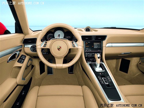 内饰方面,在Carrera GT基础上打造的全新911 Carrera 的内饰结构由于中控台向前部抬升,并且高位换挡杆或选挡杆像赛车一样更靠近方向盘,使驾驶者能够与驾驶室更好地融为一体。此外组合仪表由五个圆形仪表组成,其中一个是高清晰度多功能显示屏,此外还有中央转速表和位于方向盘左侧的点火开关,都是保时捷特有的设计。