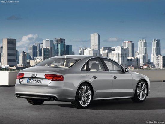 车窗部分的饰条也被取消以符合运动化车型的需求,铝制风格的外后视镜壳、双侧双出后排气管,独特的20英寸五幅运动化轮毂(可选21英寸轮毂)、黑色的刹车卡钳配合前400毫米、后365毫米的大尺寸打孔刹车盘(还可选择碳纤维刹车盘)都是S8所独有的配置。同时,S8也标配了LED头灯和双层玻璃。
