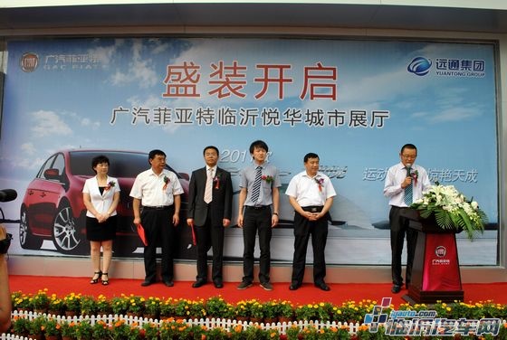 2011年9月9日远通广汽菲亚特临沂悦华城市展厅盛装开业,远通汽车贸易集团副总经理杨成斌、王保友、薛灵芝、广汽菲亚特厂家领导及媒体界的朋友共同见证开业盛况。