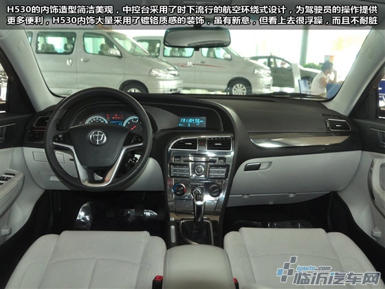 中华H530全系标配双安全气囊,ABS+EBD,EBA/BAS刹车辅助和倒车雷达。1.6 MT/AT豪华型两款车型配有前排侧气囊和LATCH儿童座椅接口。中华H530全系标配行车电脑显示屏、后视镜电动调节和USB/iPod外接插口。1.6 MT/AT豪华型两款车型配有真皮方向盘、电动天窗、后视镜加热和时下非常流行的无匙启动系统。
