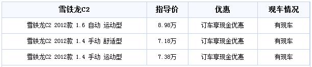 9月1日,东风雪铁龙C2 2012款正式上市。新车型配备1.4L、1.6L两种动力,新波尔多红、碳晶黑、爱琴海蓝三种颜色。同时,C2 2012款增配不加价,售价为7.18万~8.98万元。本站编辑从临沂交通实业东风雪铁龙4S店获悉,C2 2012款于鲁信车展雷霆上市,现展车已到店,全面接受预定,订车还享现金优惠。