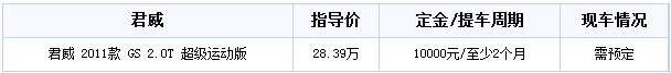 成都车展上,上海通用正式发布君威GS,售价28.39万。本站编辑从临沂悦新别克4S店获悉,目前展车将于月底或十月上旬到店,现接受预定,定金10000元起,提车周期至少两个月。