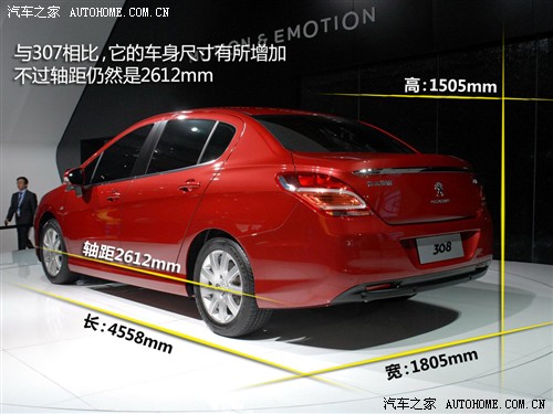 国产308另一个特点就是延续了307的底盘和动力系统。308底盘采用前麦弗逊式独立,后可变形横梁式非独立悬挂,轴距与307也一样同为2612mm。