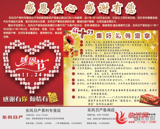 东风日产临沂易利专营店感恩节活动 好礼相送