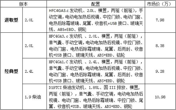 动力方面,瑞鹰进取型搭载成熟的HFC4GA3.C发动机,该发动机排量为2.0L,最大功率达100Kw/6000rpm,最大扭矩为172Nm/3000rpm。在驱动方式上,瑞鹰进取型采用前置两驱形式,悬挂方面为麦弗逊式独立前悬,双叉臂式,带双向充气式减震器及螺旋弹簧的后悬,再配合成熟的2.0L发动机,具有很好的通过性。