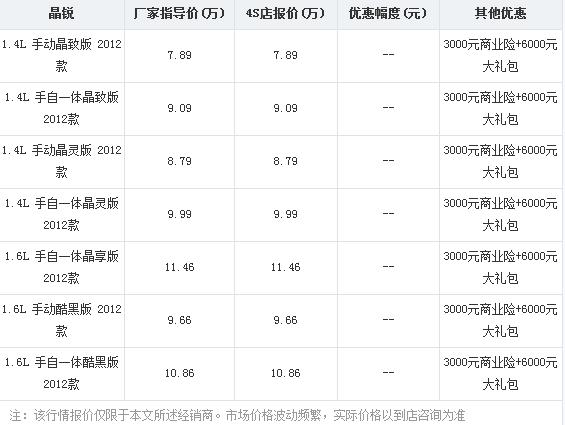 晶锐送3000元商业险和6000元大礼包