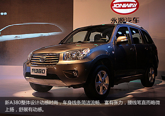 聘请日本专业设计师度身打造,永源汽车新A380的外观在老款的基础上进行了大幅改进。新A380整体设计动感时尚,车身线条简洁流畅、富有张力,呈现柔中带刚之美。腰线笔直而略微上扬,让车身侧面显得舒展有动感。