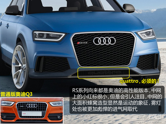 网易汽车4月20日报道 如果说S系列是奥迪的性能版本,那么RS系列就是高性能版,通常情况下RS会在轿车版本的基础上对动力和悬挂系统进行全方位的改造,但今天不同的是,它来自奥迪旗下的SUV——Q3。