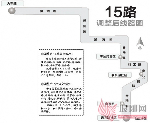 在15路调整方面,临沂市公司拟将15路由李石河延伸至月亮湾社区,并将始发站由临沂大学缩短至火车站。