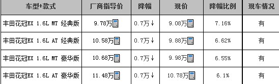 花冠EX现金优惠7000元 店内现车足