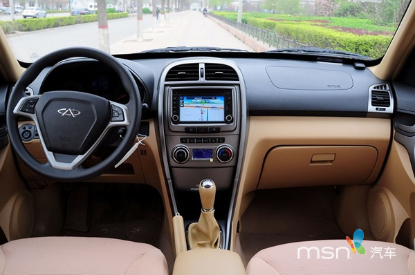 内饰的设计相比外形来说就显得比较年轻了,浅色调内饰正符合当今的流行趋势。少量金属装饰的点缀,让瑞虎的内饰一下变得轻松活跃起来,三辐式方向盘手感一般,但是多功能按键的设计十分实用,应该会很受年轻人欢迎。