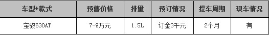 宝骏630AT 7-9万元 1.5L 订金3千元 2个月 有