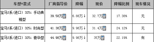 近日搜狐汽车编辑从临沂华晨宝马4S店处了解到,目前店内宝马325i现金优惠达9.98万元。店内有现车1辆,颜色为灰色。喜欢该车的网友可到店赏车试驾,与经销商详细咨询,争取更大优惠。