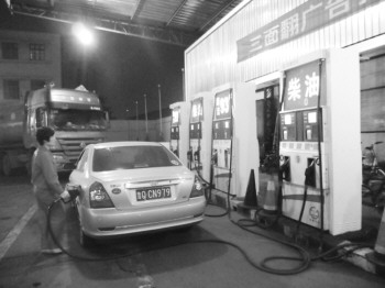 听闻油价要降,加油站内加油的车辆明显减少。记者 英子 邵琳 摄
