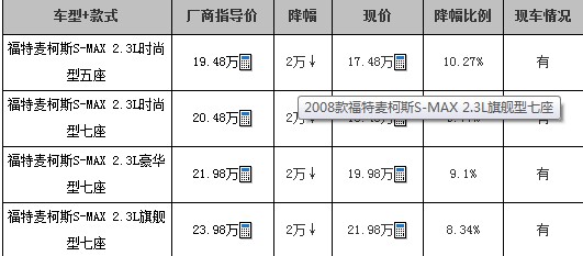 编辑建议:S-MAX作为福特旗下在中国唯一一款国产MPV车型,无论在空间还是售价方面都算是具有优势,目前该车可享受2万元现金优惠,对该车有购买意向的朋友不妨抓住时机,适时选择购进。