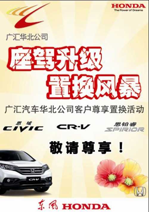广汇东风本田汽车翔宇4S店,思铂睿车型为您推出"升值焕新,从0开始"升级享精彩,让感恩与您一路相随!为回馈广大客户的支持与信赖,思铂睿"升值焕新,从0开始"活动于2012年5月1日至10月31日期间盛情启动,诚邀您的热情参与!