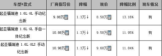 编辑建议:作为起亚的老车型,福瑞迪的优惠力度很大,对于一款总价不到10万的家庭轿车,经销商给出13000的现金优惠,价格应该已经下探至谷底。福瑞迪是起亚汽车启用虎啸式家族前脸的开山之作,这款车外形流畅美观,内部空间够用,黄金排量的1.6L发动机燃油经济性出色,是一款非常优秀的家用车。