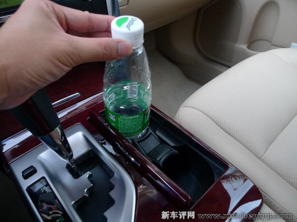 凯美瑞在这个方面是得高分的。它的车厢里共有10个杯座,而且每一个的位置都很顺手、好用。中控台的杯座是有翻盖的,合上后很整洁,打开后分两格,中间有一个前后带弹簧卡口的分隔装置。它的弹簧小卡口设计非常巧妙,上下各一,正是它们使得大部分形状的饮料瓶都可以被固定住,很高的矿泉水瓶放进去都会被加紧,不容易在行车中被晃倒。