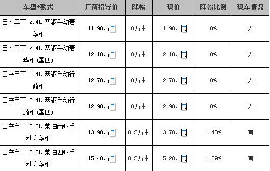 郑州日产奥丁优惠2000元 少量现车