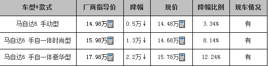 马自达6现车充足 购车最高降2.2万
