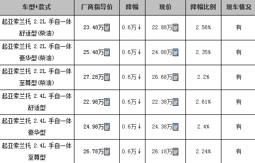 起亚索兰托优惠6000元 现车较充足
