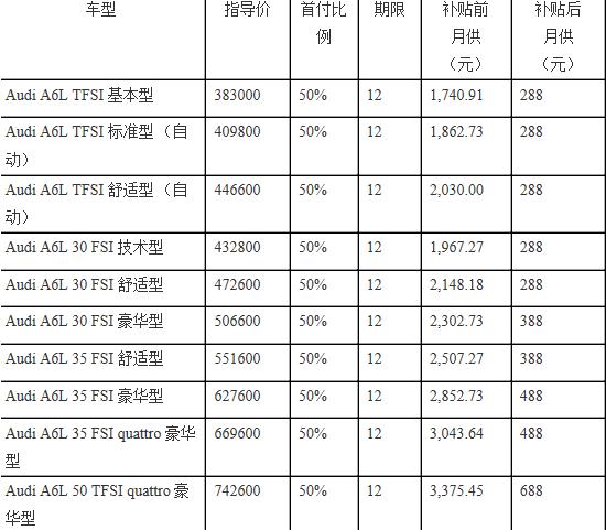 临沂奥丰 全新奥迪A6L月供补贴达3375元