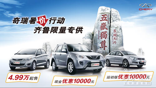 奇瑞瑞虎“夏不为利 厚惠有期”是奇瑞公司为回馈临沂本地瑞虎消费者,在夏季到来之际推出的大型优惠促销活动。活动期间,消费者购买瑞虎2012款运动型即可享受包括3000元节能补贴、5000元油卡、2000元现金的优惠。