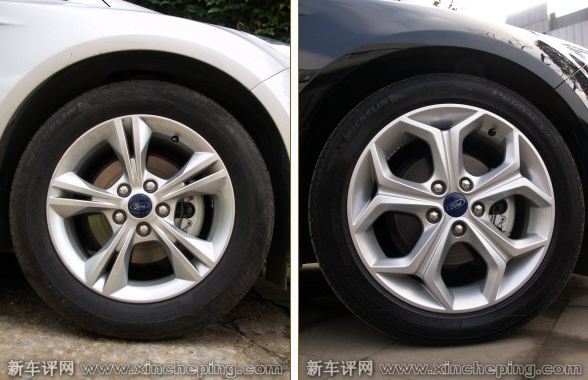 相比2.0L顶配运动版,1.6L不仅轮圈造型有所不同,尺寸也变为16寸,搭配205/60R16轮胎。而2.0L运动版采用215/50R17轮胎,配备跟致胜豪华运动版相同造型的轮圈。环顾新福克斯整个配置系列,其实只有2.0L运动版一款车型采用了17寸轮胎,其余均为16寸轮胎(包括三厢版最高配),可见福克斯没有刻意在轮胎配备上求亮点,略厚的轮胎其实更容易适应中国的路况。