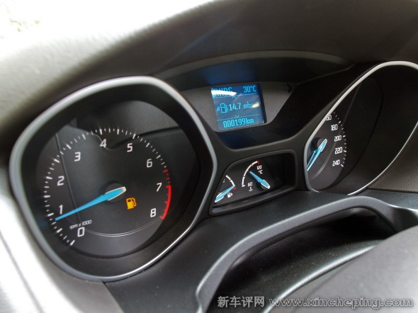 新福克斯1.6仪表设计不变,但取消了彩色小屏幕,改成单色屏幕,不能全部显示娱乐、空调等信息,只剩下行车电脑信息显示功能,但仍可通过方向盘按键操控。便利性有所降低,但实用性仍然到位。