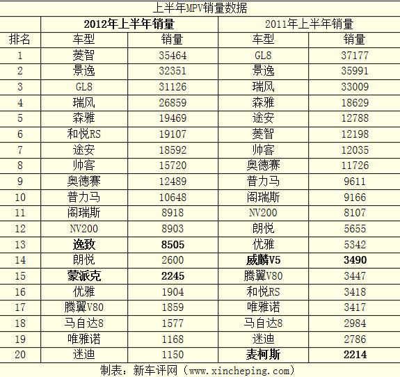MPV市场唯一的看点就是去年上市的广汽丰田逸致进入了销量榜单,但半年卖8505辆的销量成绩实在一般,家用MPV车型依然没有得到市场认同。
