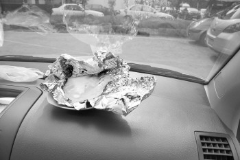 13时左右是一天中最热的时候,记者买来一支温度最高可显示50摄氏度的温度计。在放入车内前,记者用一分钟测量出室外温度为36℃,车内温度超过45℃。这么热的温度,人刚坐进车里,就有种呼吸困难的感觉。记者用最快的速度把鸡蛋和白虾放进锡纸里包好,又在汽车操作台上放了两个生鹌鹑蛋。放好后,记者把温度计也留在车里,准备两小时后测量车内最高温度。