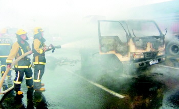 据目击者付先生介绍,事发时,他看到该货车的驾驶室突然起火,然后整个货车开始燃烧,火势一度很大。“车上装的是纸箱,很容易着火。”付先生告诉记者,他估计是发动机着火了,驾驶员和副驾驶发现后,马上从车上跳下来。“他们下车后就拨打了119电话,消防人员很快就赶来灭了火。”
