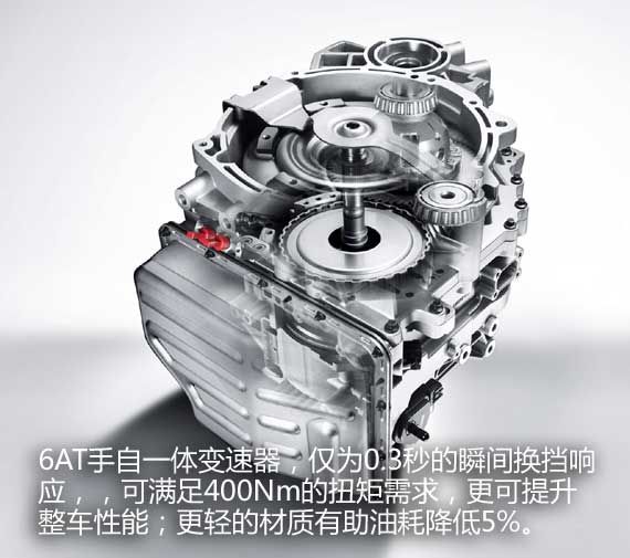 源于吉利2009年收购的全球第二大的独立自动变速器公司——澳大利亚 DSI(Drivetrain Systems International)的6AT手自一体变速器,与GeTec发动机共同组成了吉利帝豪全新EC8的动力总成。与目前自主高端车型中常见的4AT、5AT或CVT相比,DSI 6AT手自一体变速器使换挡过程平顺、安静;仅为0.3秒的瞬间换挡响应,可满足400Nm的扭矩需求,更可提升整车性能;更轻的材质有助油耗降低5%。