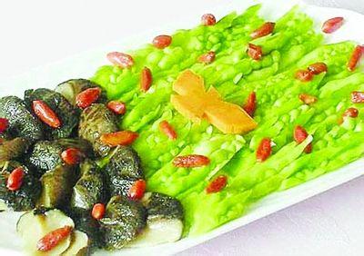 苦瓜是一种明星级减肥食物,苦瓜中的苦瓜素能够减少脂肪和多糖的摄取,在夏天食用还能清热祛暑,利尿解毒。另外,苦瓜含膳食纤维,能促进肠胃蠕动,香菇、金 针菇也都具有降脂减肥的作用。苦瓜有非常多烹调做法,可以榨成汁饮用,可以用作熬汤材料,可以清炒,还可以和牛奶搭配,做法多效果显著,是夏天减肥必不可 少的食物。