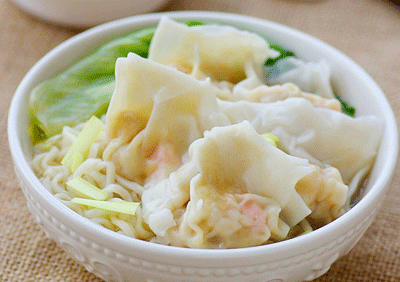 主料:鸡蛋面2块、云吞皮 1包、半肥猪肉 200克、虾仁150克、马蹄2个、鸡蛋 1个