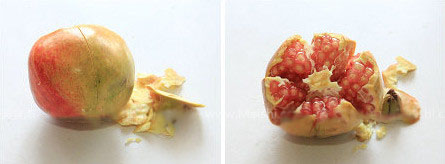 4、顺着划痕轻轻一掰,石榴就被轻松地剥开了。