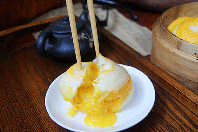 3.  咸蛋黄蒸熟(8-10分钟),碾碎。