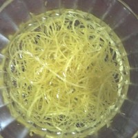8. 待冰糖溶化后放入刮好的柚子皮。