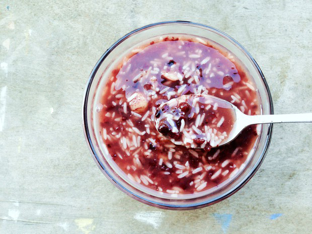 用料:红豆  黑米  酒酿  红莲、红枣(不加亦可)  粳米、糯米(不加亦可)  红糖