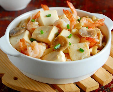 做法:竹笋去壳去皮,清洗干净,却成片状;油菜心清洗干净;淀粉加水调成糊状;豆腐切成小块,放入锅中,加入清水、少许的食盐,文火炖煮10分钟,捞出沥干水分;烧热锅子,放入麻油,油热下绍酒,清汤100毫升,草菇、笋片、菜心、食盐、酱油、味精、豆腐块,烧开之后用湿淀粉勾芡之后出锅即可。