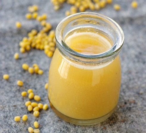 5、将苹果和绿豆依次放入榨汁机榨汁即可。