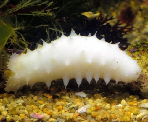 据报道,白色海参体长10至25厘米,每只都吃着海藻,很有精神。 据科学馆馆长解释,5只海参属于刺参品种,因为不具备自身色素合成功能,成为白化体状态。