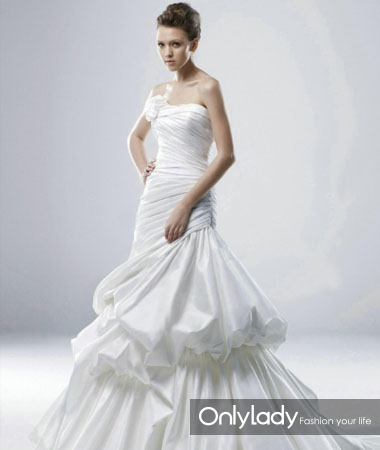 如果上身比较丰满,最好选择上身设计简单而又能展现胸线的婚纱,下摆选择公主式蓬裙;如果下身比较丰满,不要选择以皱折为设计重点的婚纱,以A字型裙摆为佳。蛋糕裙、层叠的裙摆则是丰满身材的大忌。