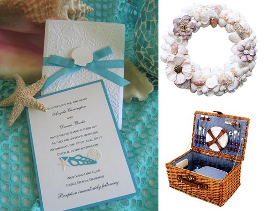 海洋婚宴邀请卡、贝壳花环装饰、外带野餐组合