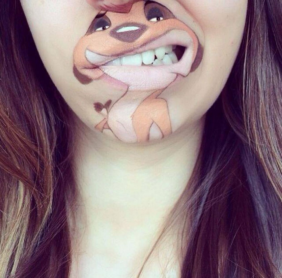 图为劳拉在嘴上画的丁满(网页截图)