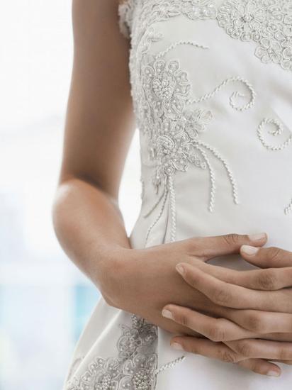手形细长的新娘,要避免太过单薄的设计,可以大胆地佩戴有雕刻设计的戒指,这样不但让手指看上去饱满而稳重,更可以增加新娘的高贵气质。梅花形设计,就是雕刻类设计的代表,不仅增添了新娘的高雅,更增添了一份柔美。