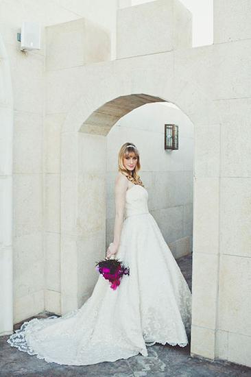 举办古堡婚礼时,婚纱礼服切忌选择过于blingbling的珠片礼服,新娘的婚纱应该选择简约设计的经典款,像朱莉一样选择拖尾婚纱会是个不错的选择。霸气的拖尾与神秘的古堡,绝对是浪漫婚礼的绝佳组合。